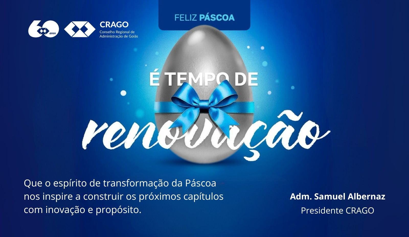 O Conselho Regional de Administração de Goiás deseja a todos uma Páscoa repleta de paz, harmonia e esperança.