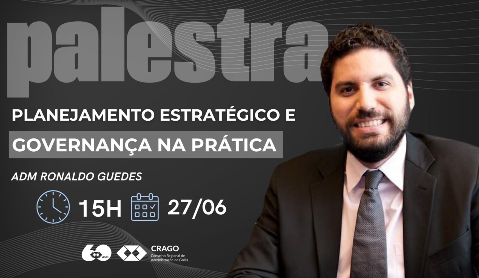 O Conselho Regional de Administração de Santa Goiás (CRAGO) realiza no dia 27 de junho, às 15h, palestra sobre “PlanejamentoEstratégico e Governança na Prática”, com o administrador Ronaldo Guedes.
